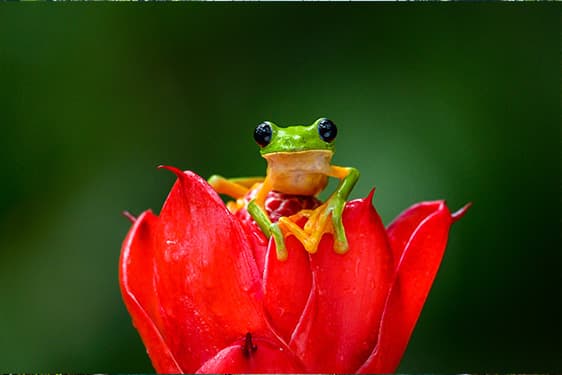 サンホセから車で約2時間、アレナル火山とトルトゥゲーロの中間地点に位置するサラピキは熱帯雨林地帯になり、 多種多様な動植物が生息しており、特にカエルや野鳥が好きな方には必見です。 赤い眼をしたアカメアマガエル、赤と青のブルージーンズとも呼ばれるイチゴ矢毒カエル、緑と黒の迷彩色のブラック&グリーン矢毒カエル、 "などとてもカラフルで珍しいカエルが生息しております。