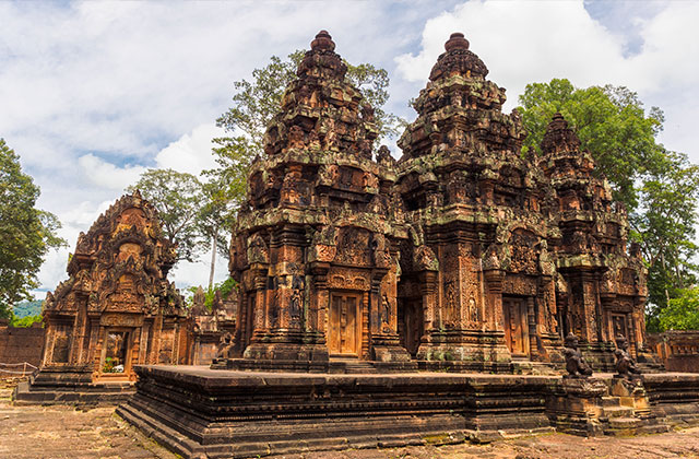 クメール語で「女の砦」という意味です。規模は小さいが保存の状態が良好。赤色砂岩による建築で赤みがかる精巧で美しいレリーフで、デヴァダー(女神)像については「東洋のモナリザ」と呼ばれています。